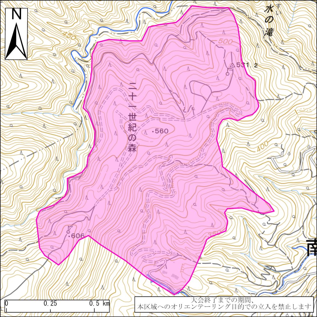 【立入禁止区域】大会開催に先立ち、大会終了まで、以下の区域のオリエンテーリング目的での立ち入りを禁止いたしますのでお知らせいたします。